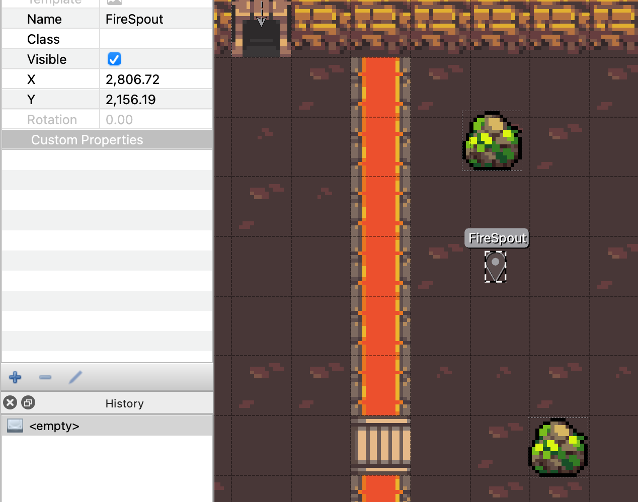 In addition to painted tile layers, the editor lets you define “object layers”. “Objects” in Tiled can be images, but they can also be invisible rectangles, or just points on the map. Where tiles can only be painted and erased, objects can be moved and interacted with independently. Since every object can have arbitrary properties, this allows for encoding a great deal of information right inside the map.